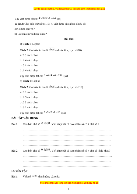 Vậy viết được tất cả: (số) BÀI TẬP VẬN DỤNG Bài 1. Cho bốn chữ số