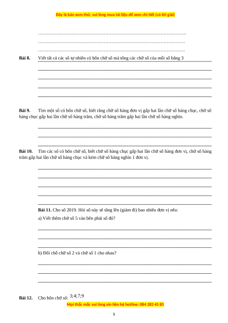 Bài 5. Viết số tự nhiên theo điều kiện sau: