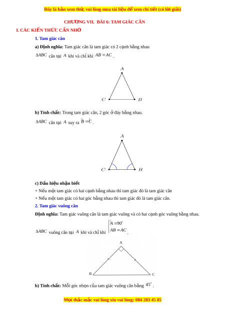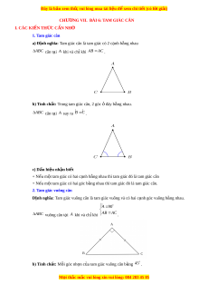 CHƯƠNG VII. BÀI 6: TAM GIÁC CÂN I. CÁC KI N Ế TH C Ứ C N Ầ NHỚ 1. Tam giác cân a) Đ n