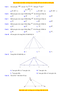 ộ tam giác cân có góc đá ở y bằng 52 thì s đo góc ố đ ở nh l ỉ à: A. 46 . B. 64 . C. 67 . D. 76 . Câu 10. S t