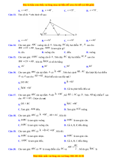 . Tính góc B theo 180 B A. B 90 B. 2 C. B 180 2 D. B 9 0 Câu 6. M t ộ tam giác cân có góc đ ở nh b ỉ ằng 64 thì s đo góc ố ở đáy là: A. 54 B. 58 C. 72 D. 90 Câu 7. M t ộ tam giác cân có góc đ ở nh b ỉ ằng 46 thì s đo góc ố đá ở y là: A. 76 B. 67 C.88 D. 60 Câu 8. M t