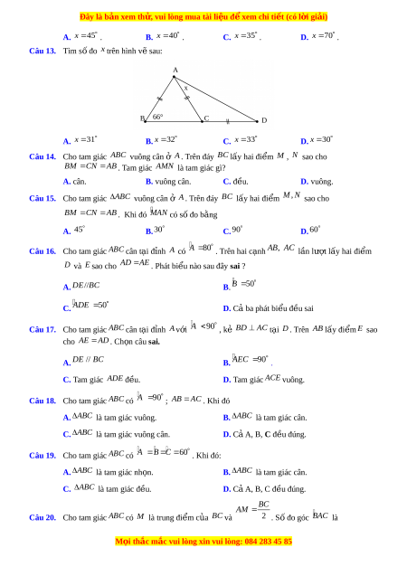 Đây là bản xem th , vu ử i lòng mua tài li u ệ đ xe ể m chi ti t ế (có l i ờ gi i ả ) A. x 4 5 . B. x 4 0 . C. x 3 5 . D. x 7 0 . Câu 13. Tìm s đo ố x trên hình v s e au: A. x 3 1 B. x 3 2 C. x 3 3 D. x 3 0