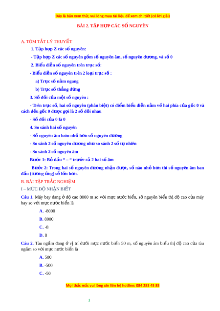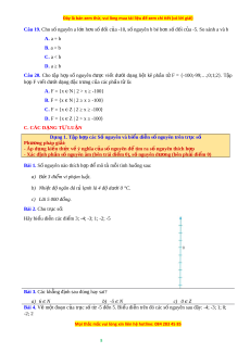 BÀI 2. T P Ậ HỢP CÁC S N Ố GUYÊN A. TÓM T T Ắ LÝ THUY T Ế 1. Tập h p ợ Z các s n ố guyên: - Tập h p ợ Z các s n ố guyên g m s ồ n ố guyên âm, s n ố guyên dư n ơ g, và s 0 ố 2. Bi u ể di n ễ s n ố guyên trên tr c ụ s : ố - Bi u ể di n ễ s n ố guyên trên 2 lo i ạ tr c ụ s : ố a) Trục s n ố ằm ngang b) Tr c ụ s th ố n ẳ g đ n ứ g 3. S đ ố i ố c a ủ m t s ộ n ố guyên : - Trên tr c ụ s , ố hai s