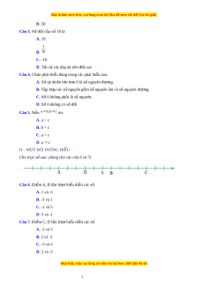 Câu 18. Cho s nguyê ố n a bé h n s ơ đ ố i ố c a ủ -8, số nguyên b l n h ớ n ơ s đ ố i ố của -8. So sánh a và b A. a = b B. a > b C. a < b D. a ≥ b