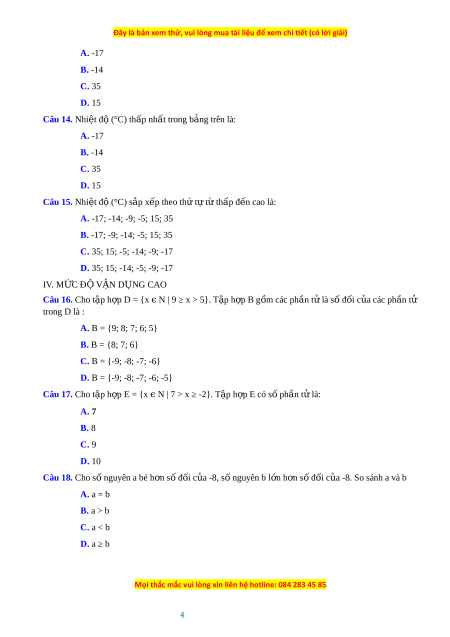 D. 35; 15; -14; -5; -9; -17 IV. M C Đ Ứ Ộ V N Ậ D N Ụ G CAO