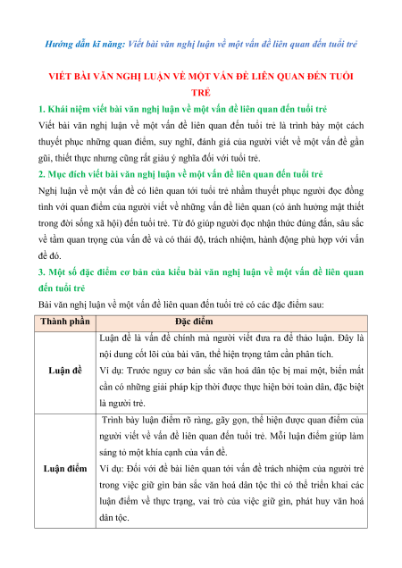 Hướng dẫn kĩ năng: Viết bài văn nghị luận về một vấn đề liên quan đến tuổi trẻ