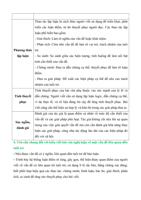 4. Yêu cầu chung đối với kiểu viết bài văn nghị luận về một vấn đề liên quan đến tuổi trẻ