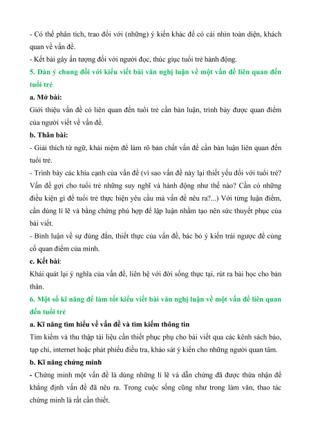 6. Một số kĩ năng để làm tốt kiểu viết bài văn nghị luận về một vấn đề liên quan đến tuổi trẻ