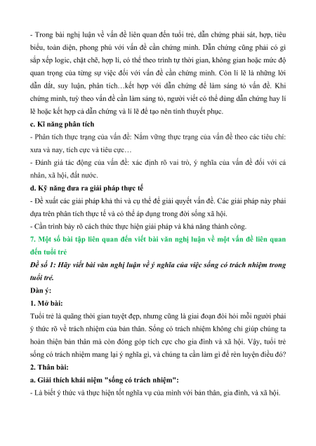 Luận điểm Ví dụ: Đối với đề bài liên quan tới vấn đề trách nhiệm của người trẻ