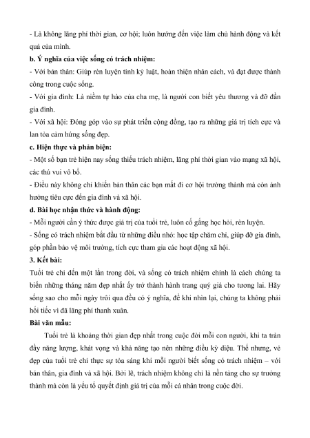 - Đưa ra giải pháp: Đề xuất các biện pháp cụ thể để nêu cao trách nhiệm của tuổi trẻ.