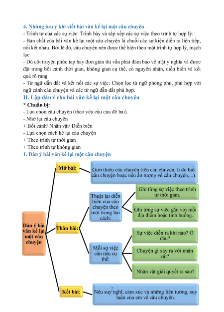 II. Lập dàn ý cho bài văn kể lại một câu chuyện * Chuẩn bị:
