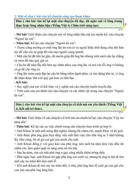 2. Một số dàn ý bài văn kể chuyện sáng tạo tham khảo