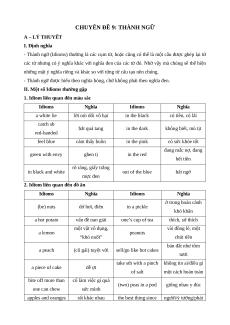 CHUYÊN ĐỀ 9: THÀNH NGỮ A – LÝ THUYẾT I. Định nghĩa