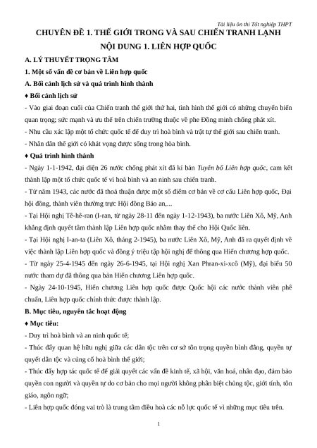 CHUYÊN ĐỀ 1. THẾ GIỚI TRONG VÀ SAU CHIẾN TRANH LẠNH