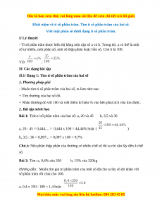 II.1/ Dạng 1: Tìm tỉ số phần trăm của hai số