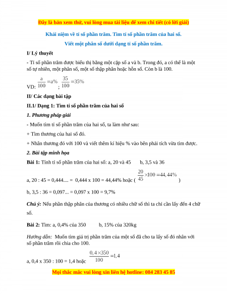 - Tailieugiaovien.com.vn giới thiệu chuyên đề Tỉ số phần trăm ôn luyện môn Toán lớp 5 cực hay năm 2022 - 2023 nhằm giúp Giáo viên có thêm tài liệu tham khảo chuyên đề luyện thi Toán lớp 5.
