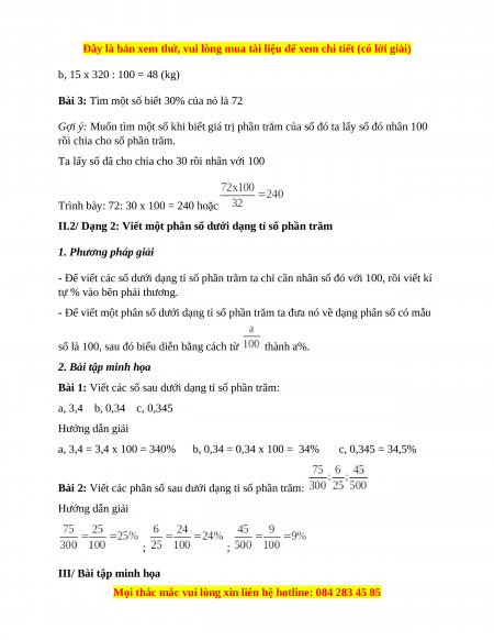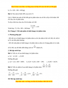 II.2/ Dạng 2: Viết một phân số dưới dạng tỉ số phần trăm