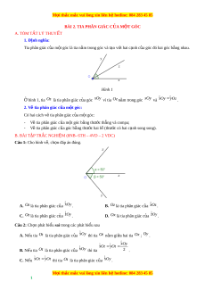 BÀI 2. TIA PHÂN GIAC C A U M T Ô GOC A. TÓM T T Ắ LÝ THUY T Ế 1. Đinh nghia: Tia phân giac c a u m t