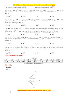 Câu 20: Cho hai goc kê bù xOy , xOz . Ve tia Ot la tia phân giac xOy va tia Ot ' la phân giac xOz . Số đo tOt ' la A. 70 . B. 80 . C. 60 . D. 90 . C. ĐAN AN TR C Ắ NGHI M Ệ ĐAP AN 1. A 2. C 3. A 4. C 5. C 6. D 7. A 8. B 9. A 10. C 11. B 12. D 13. D 14. B 15. D 16. D 17. B 18. C 19. A 20. D HƯ N Ớ G D N Ẫ GI I Ả CHI TI T Ế Câu 1 (NB): Cach gi i ả : Ch n ọ A. M i ọ thắc m c