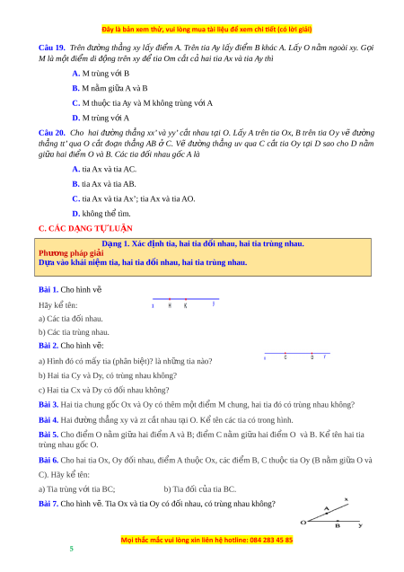 D ng 1. Xác đ nh tia, hai tia đ i nhau, hai tia trùng nhau.ạ ị ố