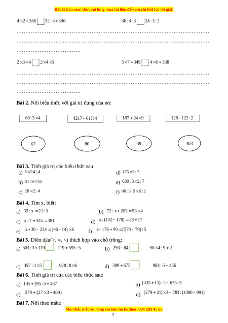 Bài 2. Nối biểu thức với giá trị đúng của nó: 67 80 39 403
