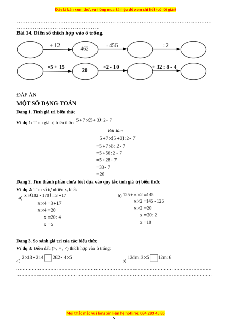 Bước 3: Thực hiện tất cả các phép cộng và phép trừ theo thứ tự từ trái qua phải. MỘT SỐ DẠNG TOÁN