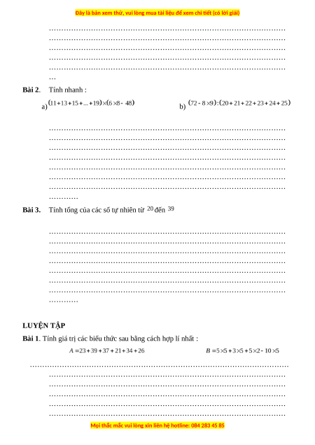 …………………………………………………………………………………… … Bài 2. Tính nhanh : a) b)