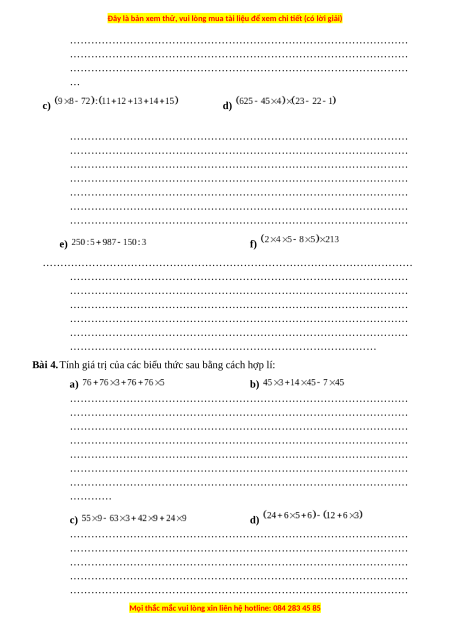 Bài 4.Tính giá trị của các biểu thức sau bằng cách hợp lí: