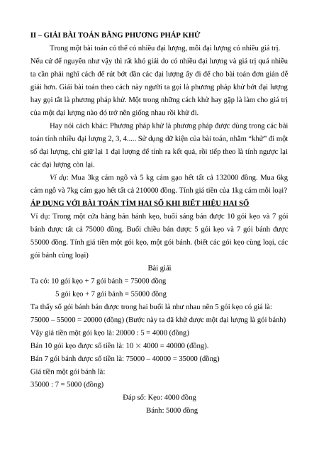 toán tính nhiều đại lượng 2, 3, 4..... Sử dụng dữ kiện của bài toán, nhằm “khử” đi một