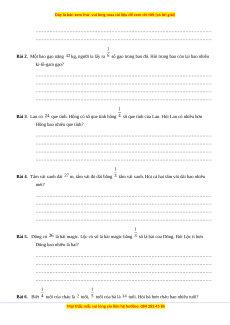 Bài 2. Một bao gạo nặng kg, người ta lấy ra số gạo trong bao đó. Hỏi trong bao còn lại bao nhiêu