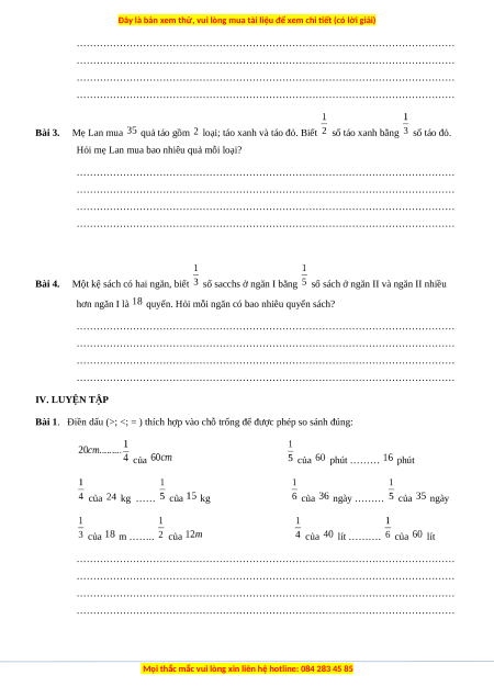 Bài 3. Mẹ Lan mua quả táo gồm loại; táo xanh và táo đỏ. Biết số táo xanh bằng số táo đỏ.