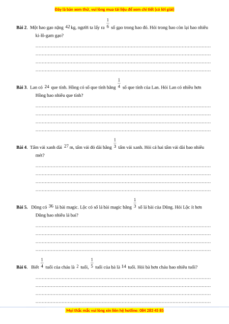 Bài 6. Biết tuổi của cháu là tuổi, tuổi của bà là tuổi. Hỏi bà hơn cháu bao nhiêu tuổi?