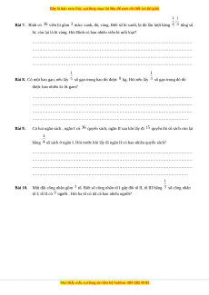 Bài 7. Bình có viên bi gồm màu: xanh, đỏ, vàng. Biết số bi xanh, bi đỏ lần lượt bằng tổng số