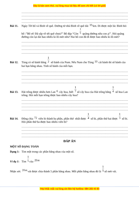Dạng 3: Giải bài toán bằng cách chia về số phần bằng nhau.