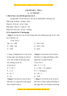 CHUYÊN ĐỂ 3 : TÌM X A – LÝ THUYẾT