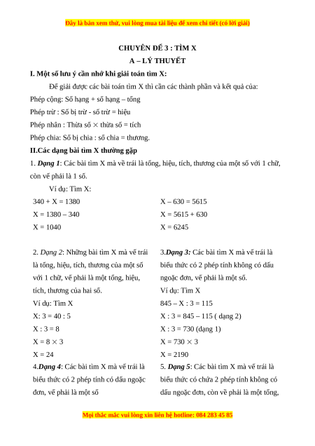 CHUYÊN ĐỂ 3 : TÌM X