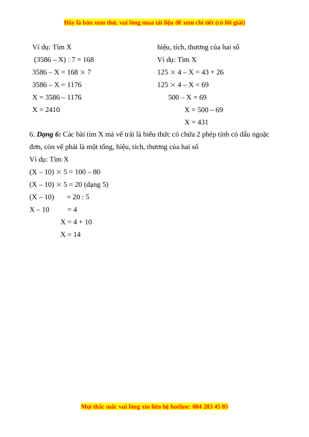 II.Các dạng bài tìm X thường gặp