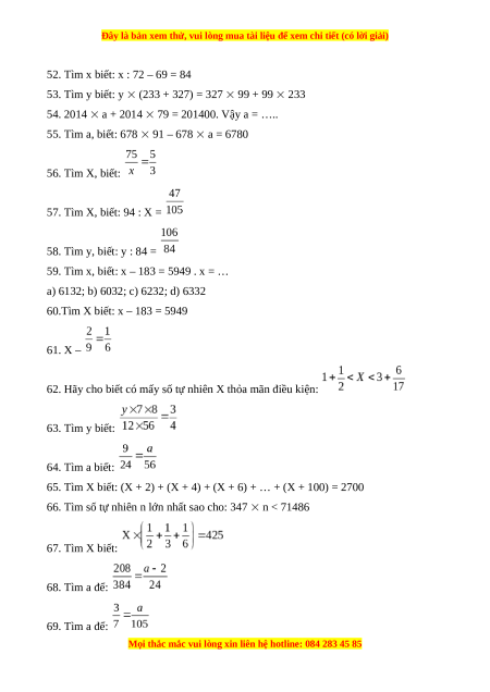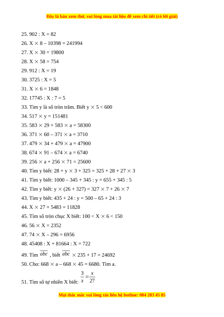 45. Tìm số tròn chục X biết: 100 < X 6 < 150 46. 56 X = 2352 47. 74 X – 296 = 6956
