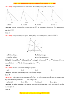 Câu 2 (NB): Trong các đư ng ờ thẳng sau, đư ng t ờ hẳng nào là đư ng ờ trung tr c ự c a ủ ABC ? A. Đư ng t ờ hẳng d. B. Đư ng t ờ hẳng e. C. Đư ng t ờ hẳng g. D. Đư ng t ờ hẳng d và e. Câu 3 (NB): M i