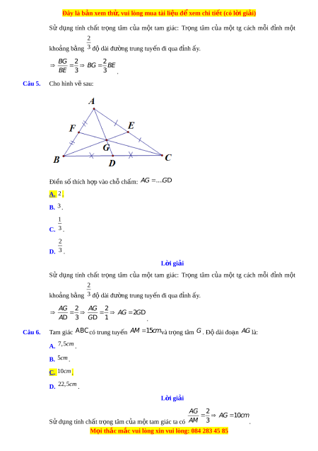 Đây là bản xem th , vu ử i lòng mua tài li u ệ đ xe ể m chi ti t ế (có l i ờ gi i ả ) Sử d ng ụ tính ch t ấ tr ng ọ tâm c a ủ m t ộ tam giác: Tr ng ọ tâm c a ủ m t ộ tg cách m i ỗ đ nh ỉ m t ộ 2