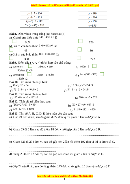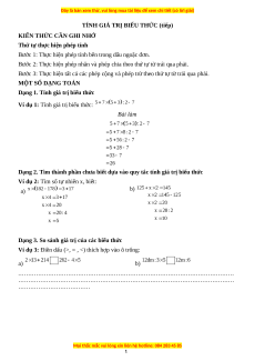 Bài 3. Tính giá trị các biểu thức sau: a) d) b) e) c) f) Bài 4. Tìm x, biết: a) b) c) d) e) f)