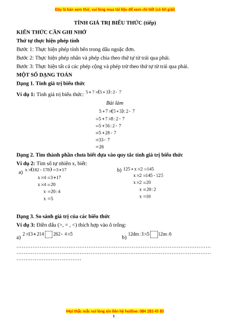 Chuyên đề Tính giá trị biểu thức tiết 2 Toán lớp 3 nâng cao Cánh diều