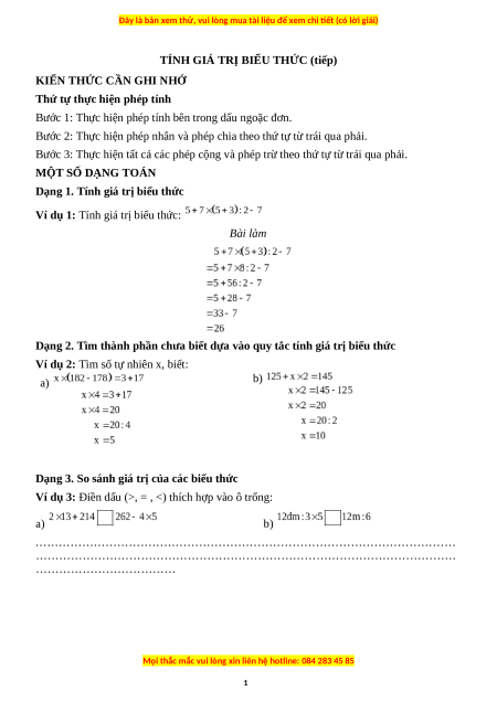 Bài 1. Tính giá trị của các biểu thức sau: