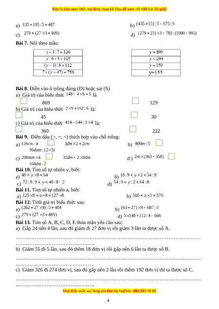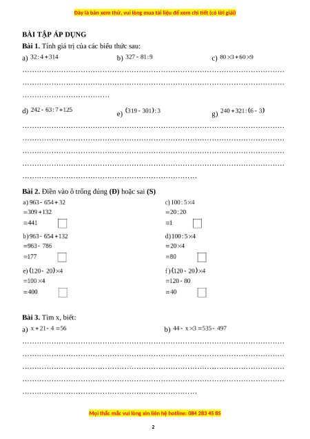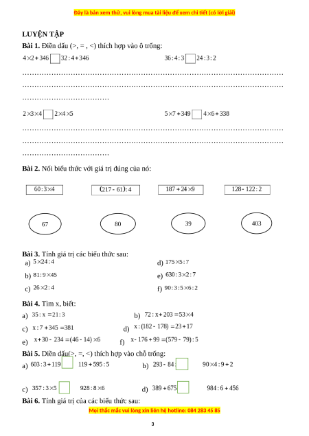 Bài 3. Tính giá trị các biểu thức sau: a) d) b) e) c) f) Bài 4. Tìm x, biết: a) b) c) d) e) f)