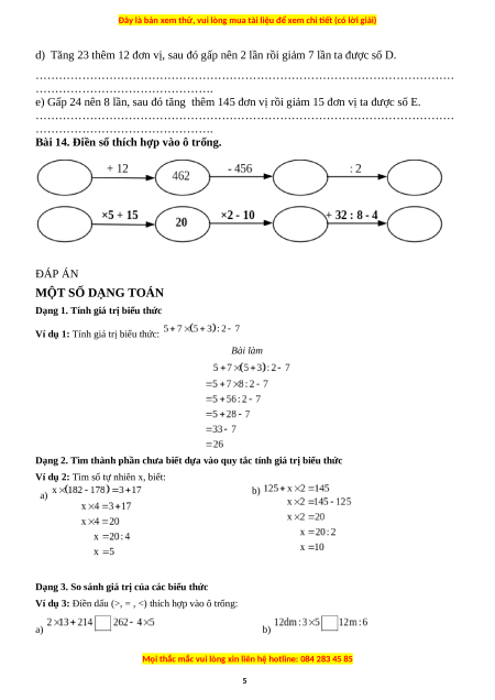 Bước 3: Thực hiện tất cả các phép cộng và phép trừ theo thứ tự từ trái qua phải. MỘT SỐ DẠNG TOÁN