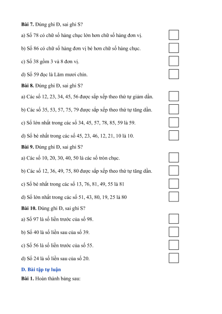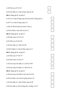 d) Số 24 là số liền sau của số 20. D. Bài tập tự luận