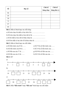 Câu 1. Số gồm 7 chục và 3 đơn vị được viết là: A. 70 B. 3 C. 37 D. 73