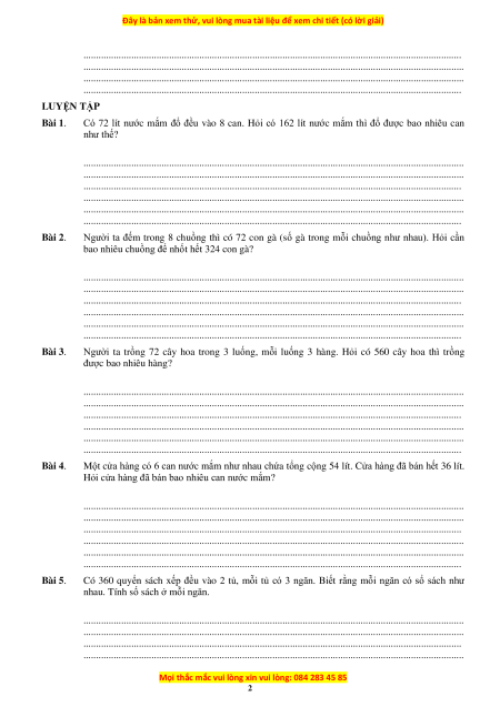 Bài 92. Có 72 lít nước mắm đổ đều vào 8 can. Hỏi có 162 lít nước mắm thì đổ được bao nhiêu can