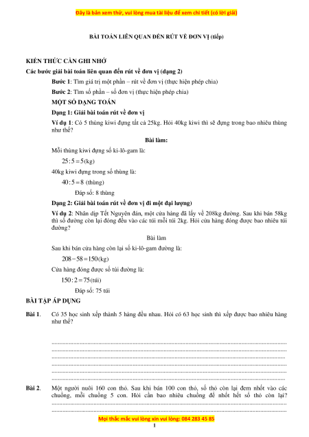 BÀI TOÁN LIÊN QUAN ĐẾN RÚT VỀ ĐƠN VỊ (tiếp)
