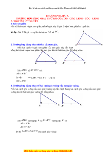 Đây là bản xem thử, vui lòng mua tài liệu để xem chi tiết (có lời giải) CHƯƠNG VII . BÀI 5. TRƯ N Ờ G HỢP B N Ằ G NHAU TH H Ứ AI C A Ủ TAM GIÁC C N Ạ H – GÓC - C N Ạ H A. TÓM T T Ắ LÝ THUY T Ế 1. Góc xen gi a. ữ